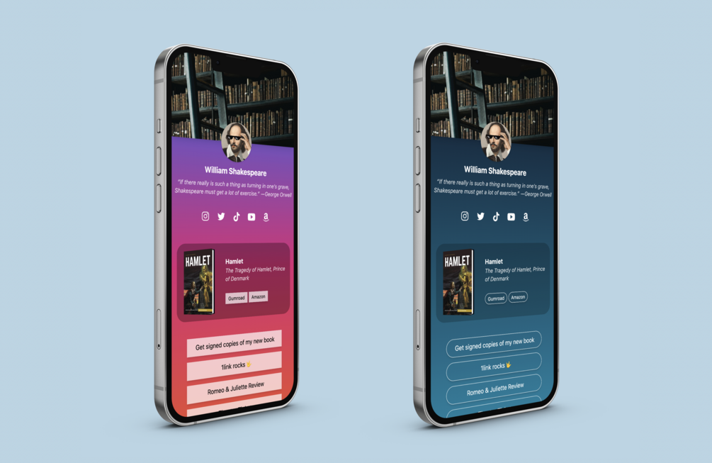 Check out an example pageYou will need basic HTML and CSS knowledge to use the template, and a place to host the files on your website (for instance, Netlify Drop). For a hosted version, create a free account on 1link!